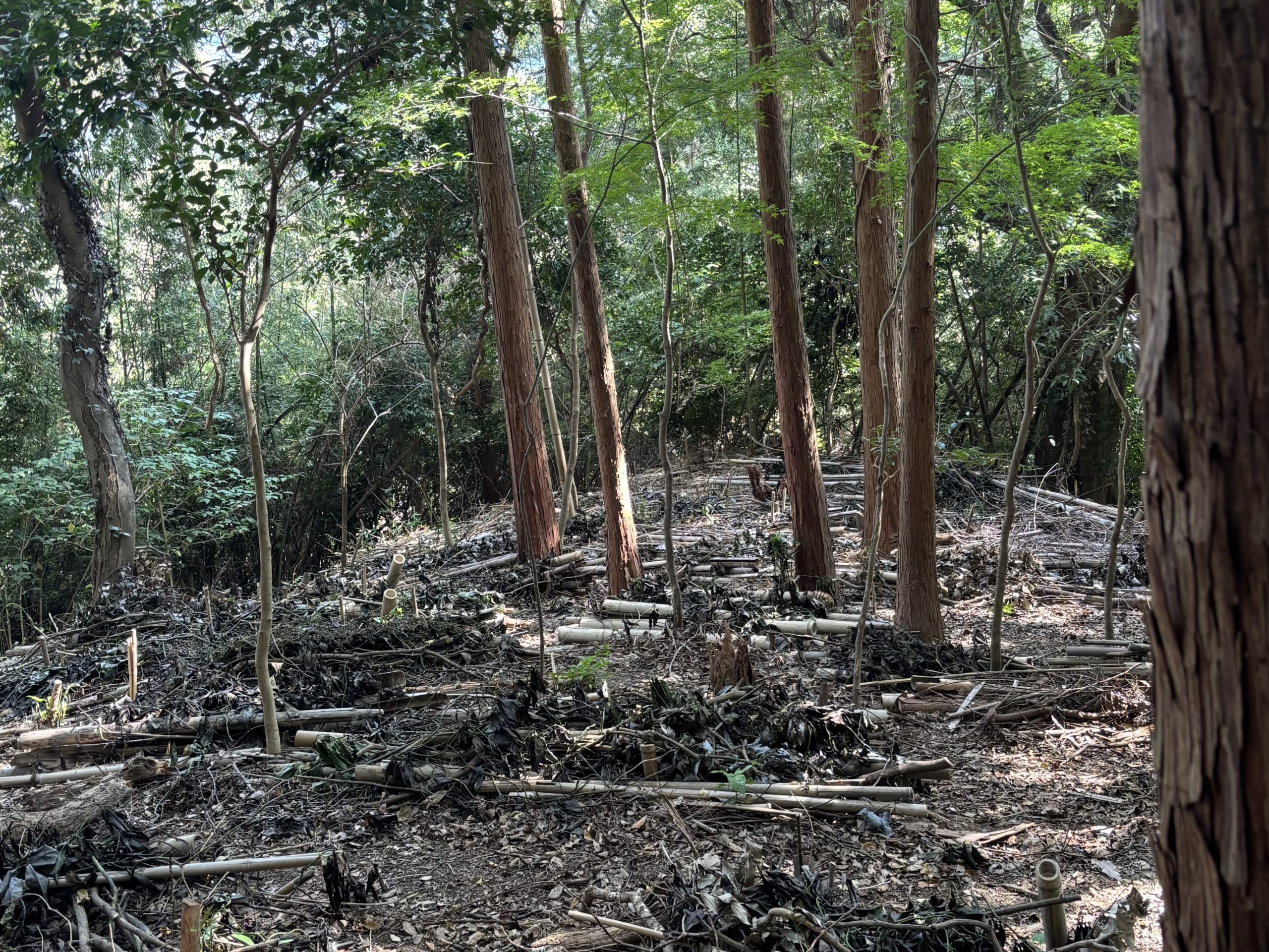 「山結び」は、その活動のひとつとして宮地山で月に一度行われており、専門家や実践者とともに手を動かしながら、自然の見方や再生の手法を学び、里山をより豊かな姿に戻すことを目指しています。今回で30回目となる取り組みに参加させていただきました。